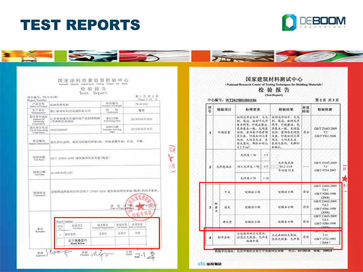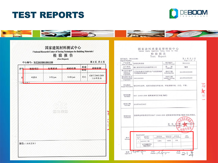 建筑材料測試中心:9H硬度、附著力、耐磨性、A級防火等級等符合標準《GB/T 23443-2009建筑裝飾用鋁單板》