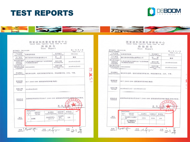 涂料質量監(jiān)督檢驗中心:硬度>6H、附著力、耐腐蝕等項目 符合標準《GB/T 23443-2009建筑裝飾用鋁單板》